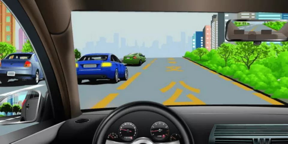 如图所示,驾驶机动车遇前方车流行驶缓慢时,借用公交专用道超车是正确的。