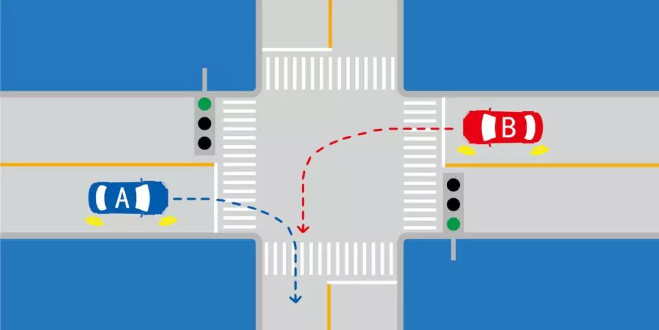如图所示,A车具有优先通行权。